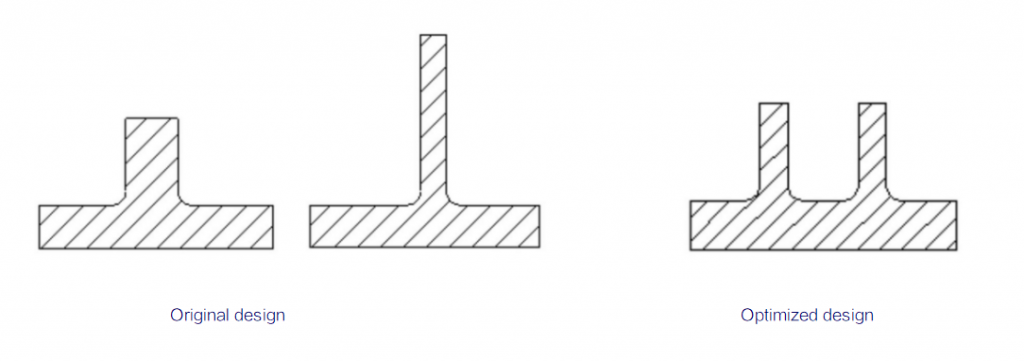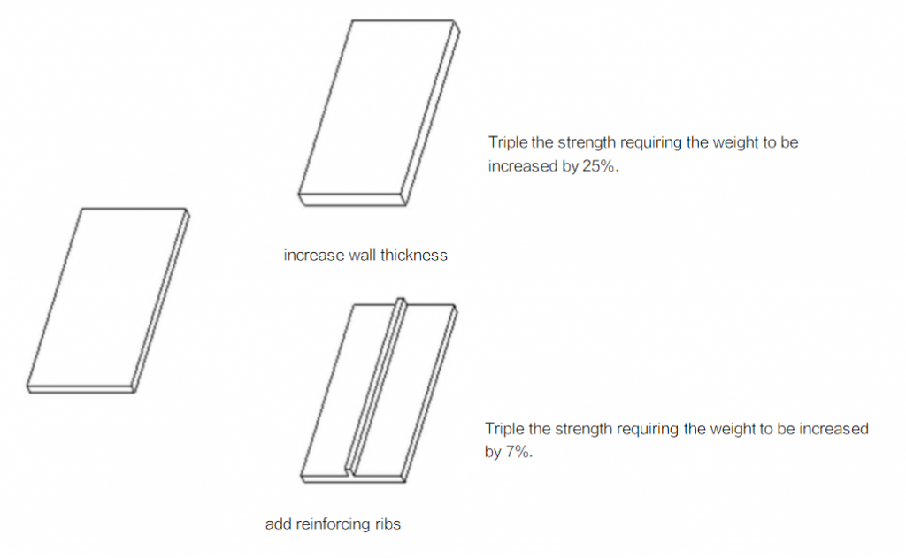 Increase part strength byRaising the part strength with more reinforcing ribs rather than lifting wall thickness: