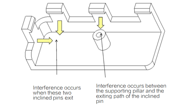 A.In snap-fit structure, should leave enough exiting space for inclined pins(or slides).
