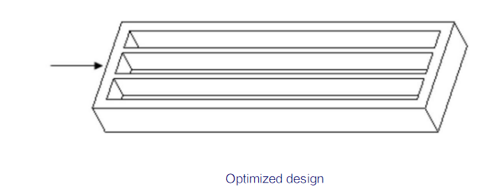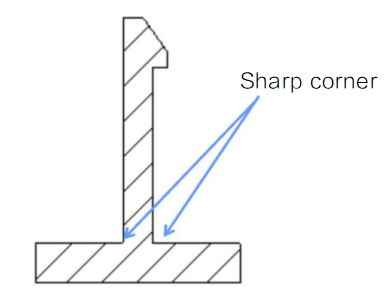 Avoid sharp corners along the flow direction of the molten