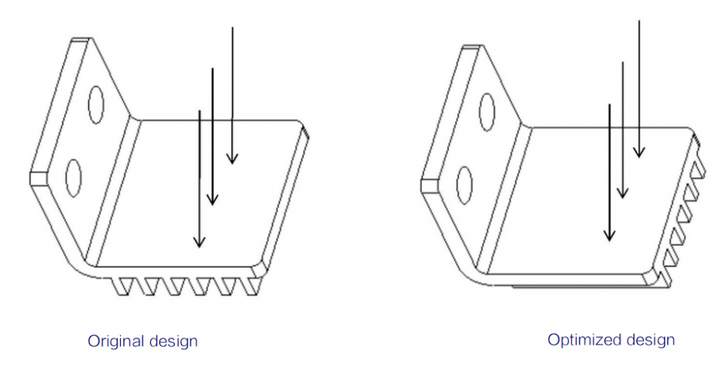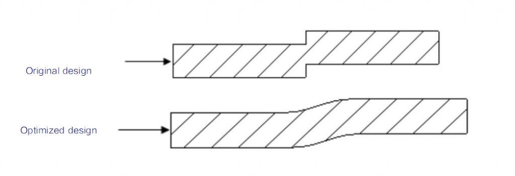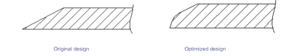 When the part is under impacting loading, the integrity of the part profile is essential and also no gaps and stress concentration are allowed on the part profile in the direction of impaction loading.