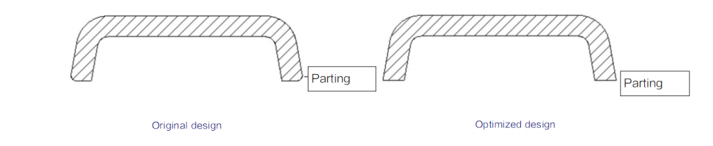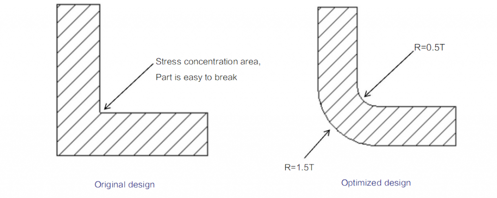 Exception: it’s better to design right angle at the areas around the parting lines of the part