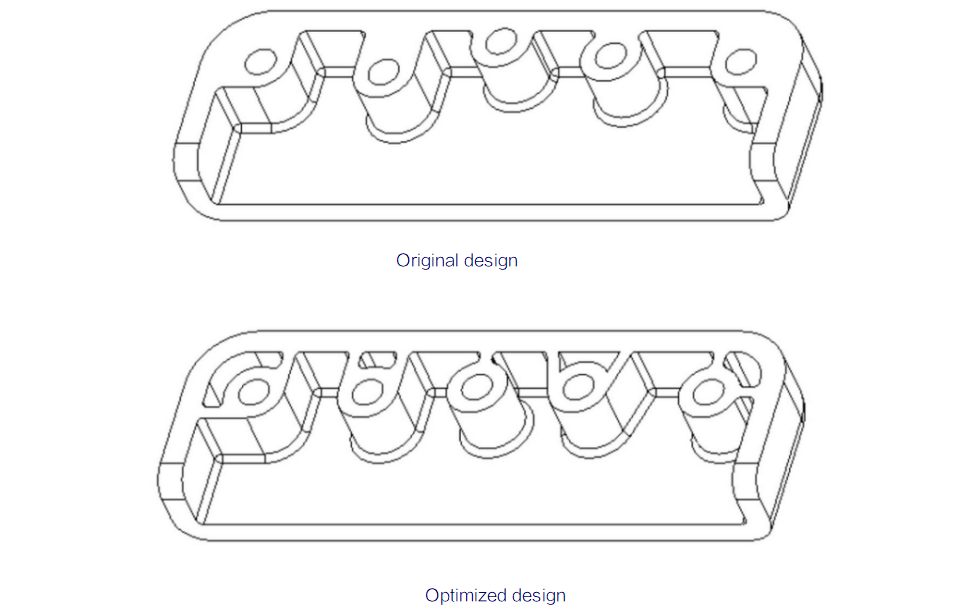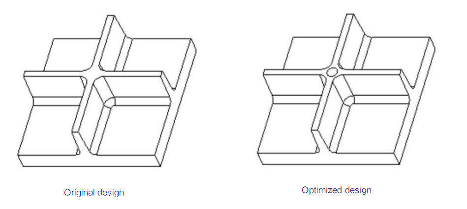 avoid too thin thickness around the root of the blind holes